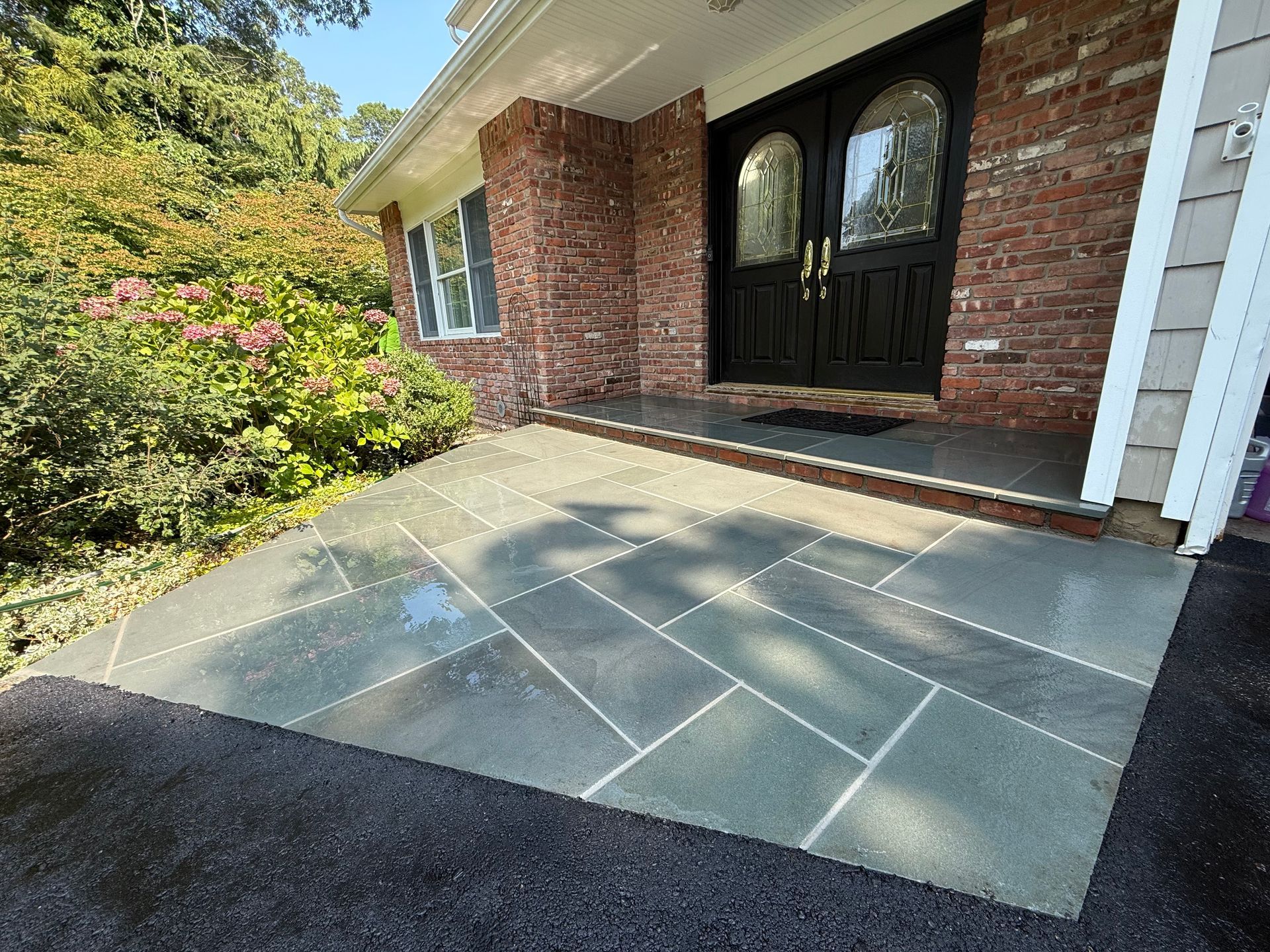 Once we install brick paving, we recommend using a paver sealer that protects against stains caused by oil leaks and other chemicals.